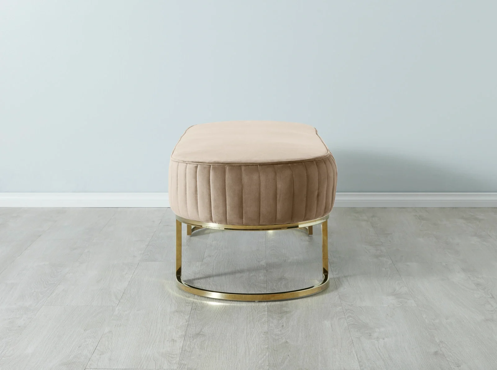 Built to last, the ottoman rests on a robust stainless-steel base finished in radiant gold, providing striking visual contrast and stable support. The clean lines and understated silhouette allow the Valencia Ottoman to pair effortlessly with modern, transitional, or classic décor schemes.
