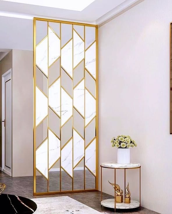 This partition works beautifully as a room divider, backdrop, or decorative element, making it perfect for living rooms, dining areas, offices, and entrance spaces. The durable steel frame ensures long-lasting quality, while the contemporary design suits luxury, modern, and minimal interiors effortlessly.